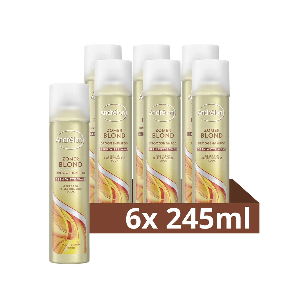 Andrélon Zomerblond DroogshampooDe Zomer Blond droogshampoo is speciaal voor normaal tot vet haar dat tussen de wasbeurten door wel een flinke opfrisser kan gebruiken. Maar het product is niet alleen geschikt voor een verfrissende boost tussen de wasbeurten door, het kan ook gebruikt worden als stylingsproduct. De formule zorgt ervoor dat het vet bij de haaraanzet opgenomen wordt, op deze manier voelt het haar weer schoon en gewassen aan. Na het gebruik van de droogshampoo heeft je haar weer zi