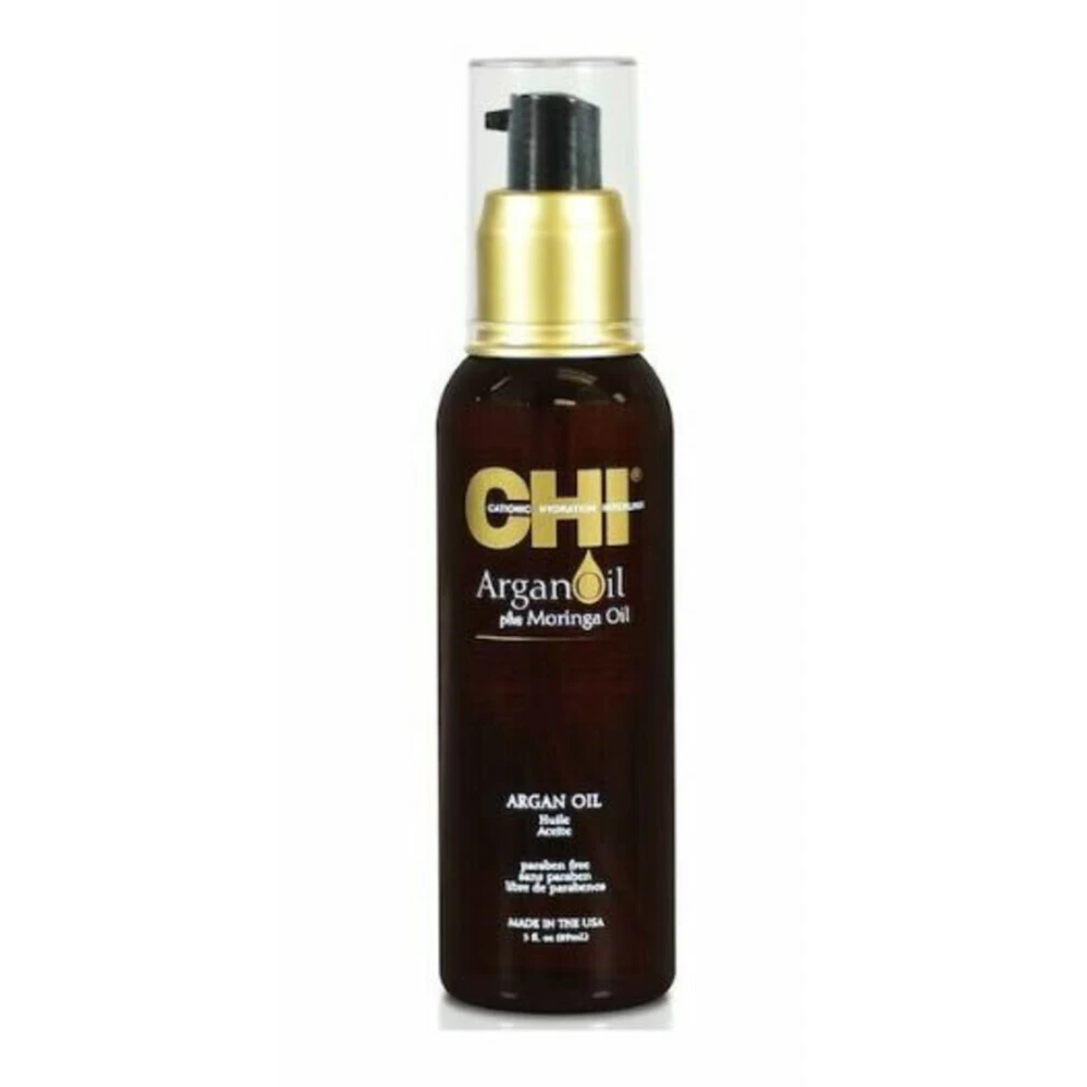 CHI Arganolie 89 mlCHI Argan Oil is een arganolie die het haar intens voedt. Argan olie is een intense verzorging voor het haar waardoor de conditie sterk zal verbeteren. CHI Argan Oil bevat moringa olie en vitaminen die het haar optimaal voeden en hydrateren. De argan olie is geschikt voor kroezend, pluizend en beschadigd haar. Het haar zal na gebruik heerlijk zacht aanvoelen en een mooie natuurlijke glans krijgen. Gespleten haarpunten worden behandeld en voorkomen. De arganolie van CHI kan geb