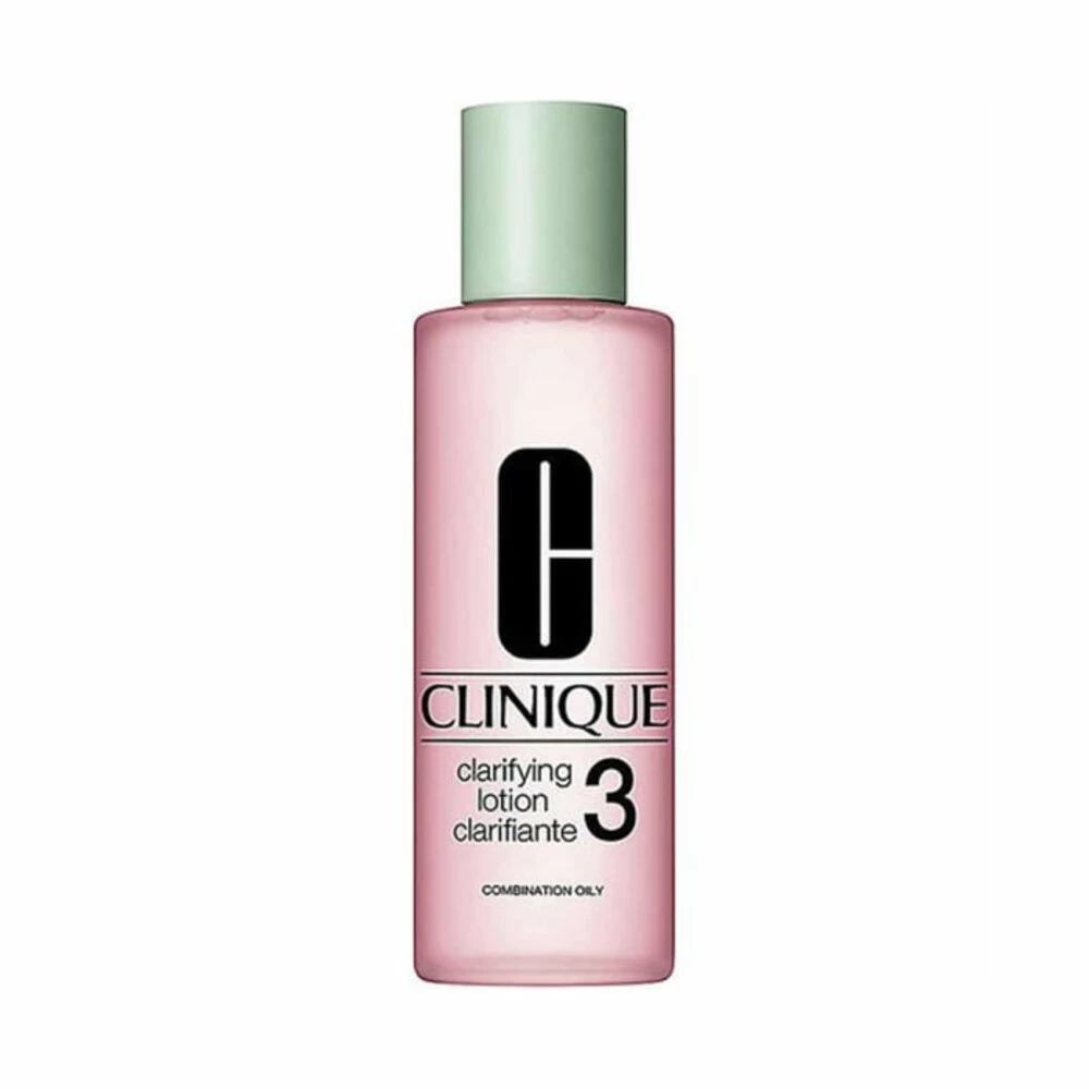 Clinique Clarifying Lotion 3 400 mlDe Clinique Clarifying lotion 2 – 400 ml is stap 2 van het Clinique 3-stappen plan en veegt het teveel aan dode huidcellen, talg- en vuilrestjes weg, voor een zachte en stralende huid. Deze lotion zorgt ervoor dat poriën zo klein mogelijk lijken, de huid vocht veel beter kan opnemen waardoor deze meer weerbaar wordt tegen onzuiverheden en droogt de huid niet uit. Het resultaat; een blijvend gezondere en jonge huid. Met het 3-stappenplan van Clinique k