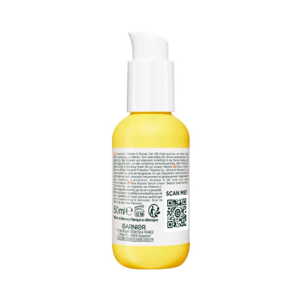 Garnier Vitamine C Serum CrèmeGarnier SkinActive Serum Cream met Vitamine C* is een 2in1 serum cream met SPF 25. Deze Glow Booster biedt de hydraterende voordelen van een crème met de werking van een serum in één.Geeft de huid een glow boostLaat de doffe huid stralen en vermindert pigmentvlekkenBevat Vitamine C* en SPF25Hydrateert de huid tot wel 72 uurLaat de huid stralen in slechts drie dagen