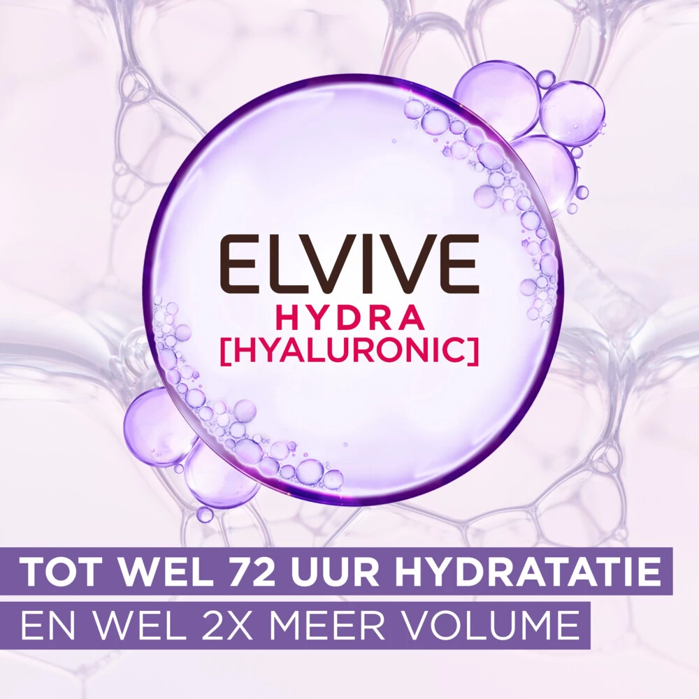 Lu0027Oréal Elvive Hydra Hyaluronic Hydraterende ShampooL’Oreal Paris Elvive Hydra Hyaluronic Shampoo reinigt en geeft het haar een hydratatieboost. Door de aanwezige hyaluronzuur ziet verzwakt en futloos haar ziet er weer levendig en verzorgd uit tot in de punten.Hydrateert het haar tot wel 72 uurVerrijkt met hyaluronzuurFrisse reiniging van het haar