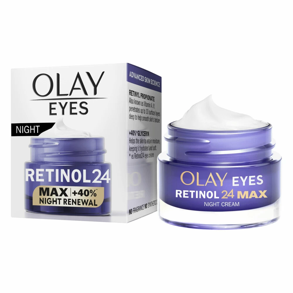 Olay Oogcrème Regenerist Retinol24 MAXHydraterende oogcrème met retinol met 40% meer hydraterende bestanddelen. Revitaliseer de gloed van de ogen met oogcrèmeVerzachtende oogcrème met de krachtigste formule van Olay met retinoïde + vitamine B3Verzachtende crème voor onder de ogen hydrateert de huid met zichtbare verbeteringen in fijne lijntjes en rimpelsParfumvrije hydraterende oogcrème, gebruik oogcrème met retinol dagelijks voor zichtbare v